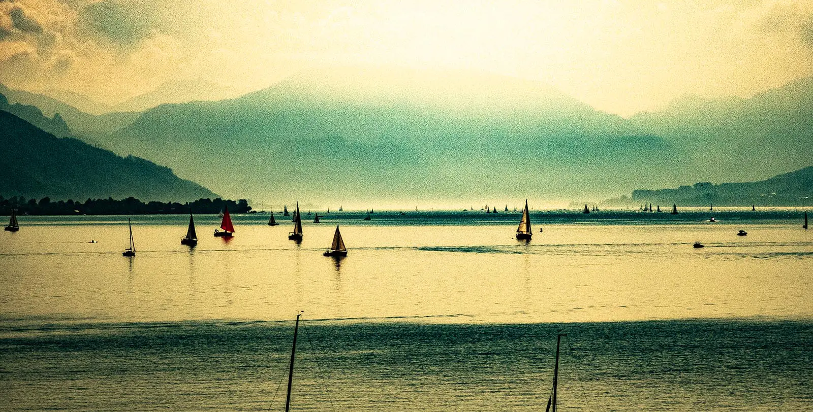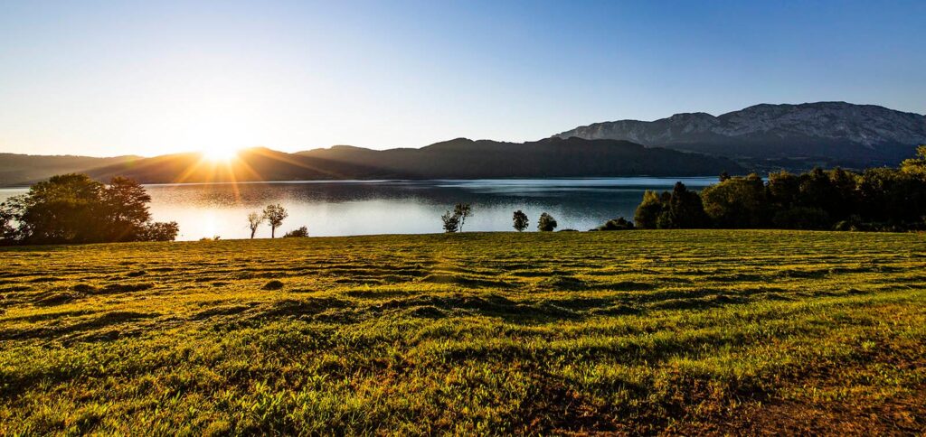 Das Zusammenspiel aus Licht, Wasser und Bergen schafft zu jeder Tageszeit neue Farbnuancen – von zartem Morgenrosa bis zu tiefem Abendblau. Uferwiesen, Segelboote und naturbelassene Buchten prägen das Bild ebenso wie dichte Wälder und weite Horizonte. Die Gegend ist ein Ort der Inspiration, die seit Generationen Künstler, Naturliebhaber und Ruhesuchende gleichermaßen begeistert.